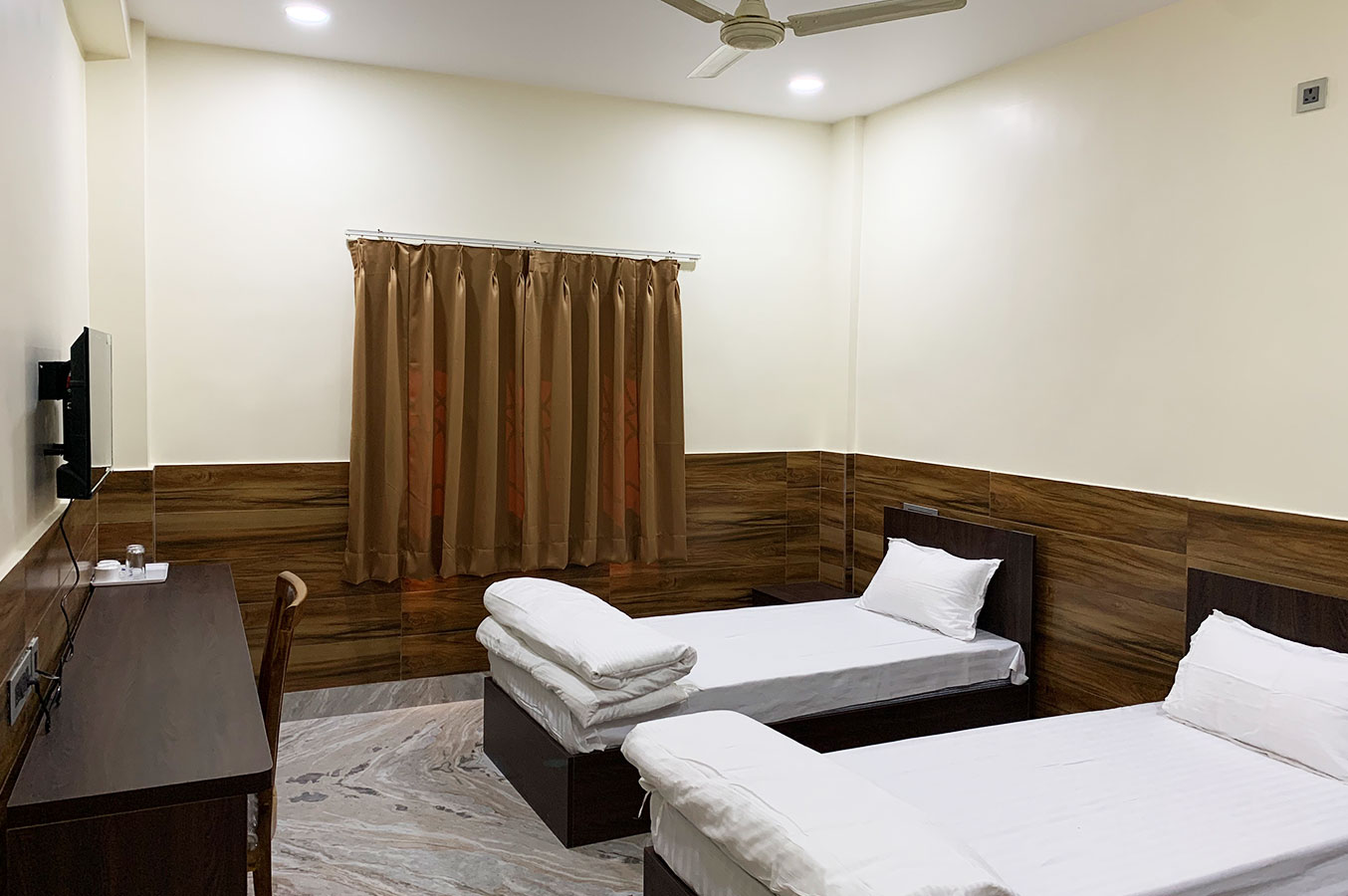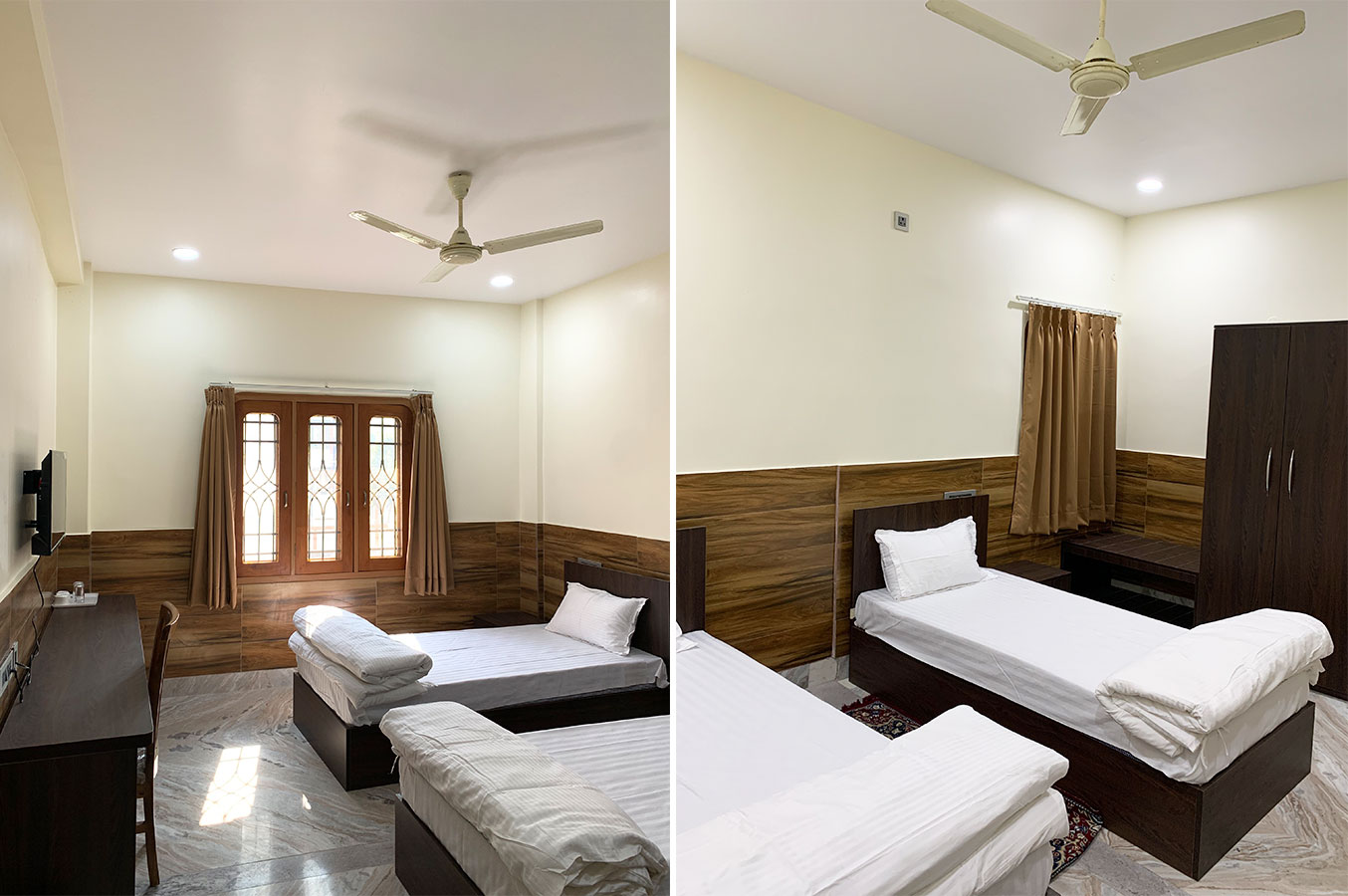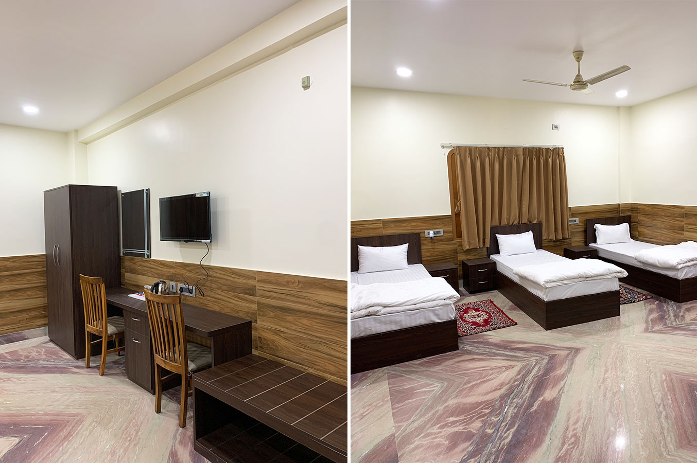The Deluxe Rooms are also furnished with all the necessary items like cozy beds(single or double), toiletries, a geyser, cable TV, room service, and other amenities. Enjoy the best-ever vacation without a hassle and make everlasting memories in our warm and cozy ambiance. These rooms are perfect if you are traveling with a group of people and are looking for a quick stay and getaway, lesser in price and higher in comfort!